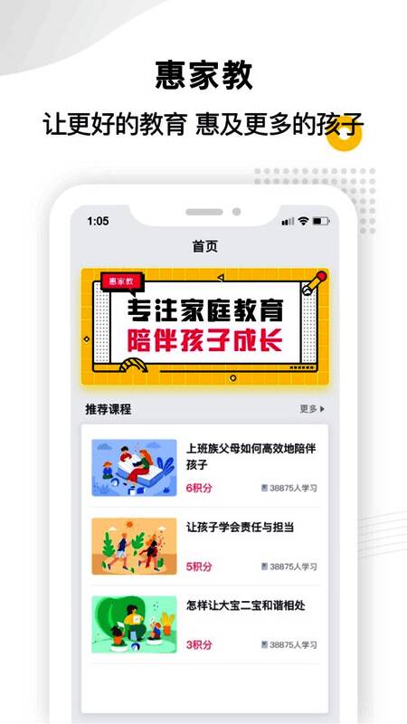 3、惠家教APP是面向惠州市0-18岁青少年儿童家长打造的在线家长学校平台。