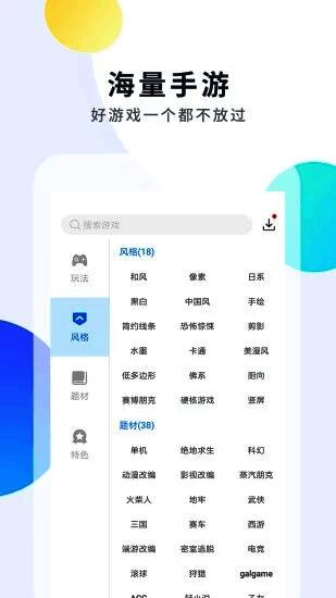 这功能简直炸裂了! 可以从玩法、风格、题材、特色找自己喜欢的手游!标签大概有100多个吧!刚好失眠 找了几个小清新的游戏 带着耳机!那种感觉无法言喻!最主要有些还MOD玩。真是抚慰我寂寞的单身狗心灵!