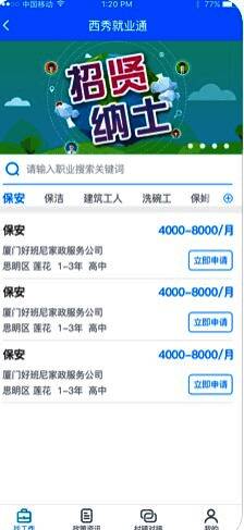 1、西秀就业通各行各业的海量招聘岗位提供给你挑选;
