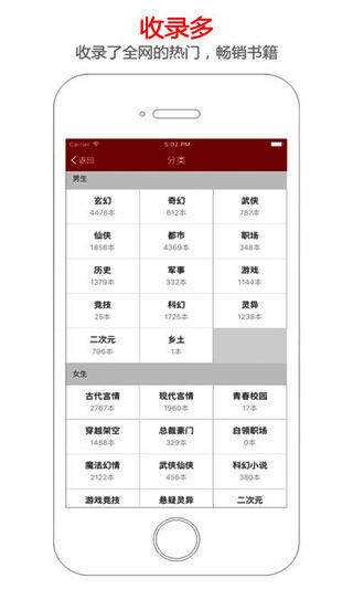 1、全面的书籍资源丰富小说类型;