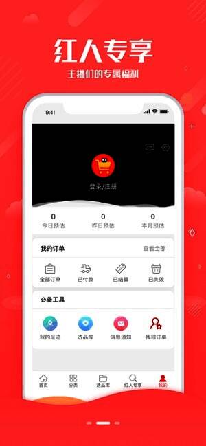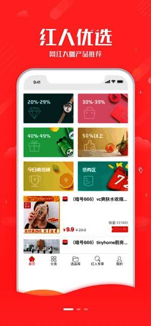 3、红人联盟包罗天猫、淘宝等海量主播优选产品,独享红人专区,精选货源一键上架。