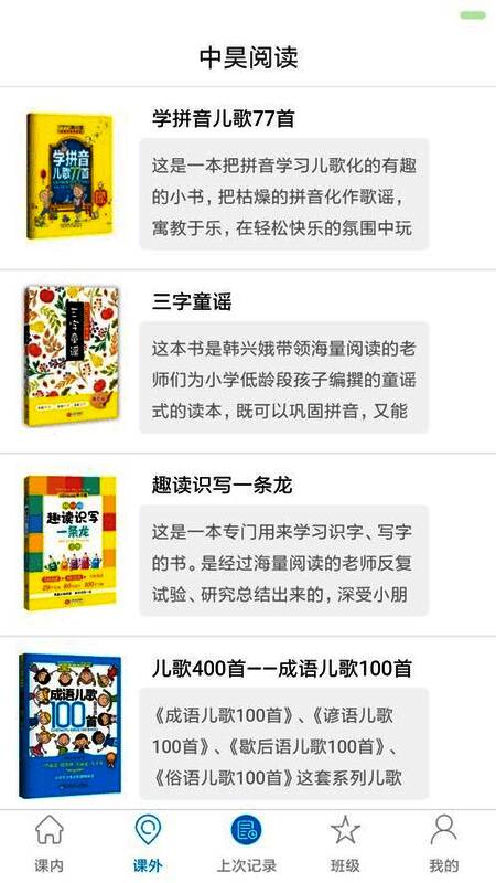 中昊海量阅读APP不仅有课内阅读,还有海量阅读系列图书为主要内容的有声课外读物。