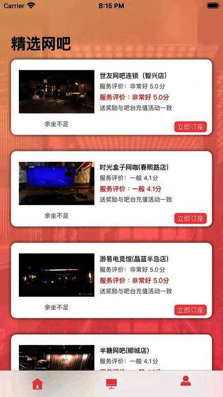 咖位有你APP这是一款网卡的预约平台,可以快速的进行预约附近的网卡,这样你就可以和你的小伙伴们一起来玩喜欢的游戏了,生活中的各种电竞的网吧都有,大家可以来现场进行选择,在家里不方便与小伙伴们进行交流,在网吧更有开黑的感觉,可以尝试着去试一试,这里为大家提供了预定网卡的服务平台,在现场直接观看网卡的具体位置和预约座位,非常轻松喜欢玩游戏的朋友们可以来进行体验。