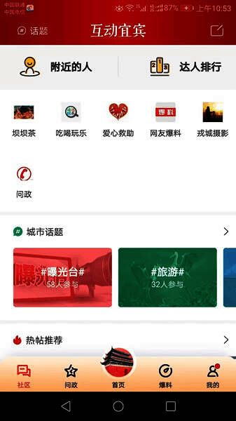 作为宜宾市重点新闻资讯客户端的《掌上宜宾》是一款专门为宜宾当地打造的新闻资讯阅读平台。掌上宜宾每天更新的新闻资讯内容比较及时,关注你喜欢的内容不,更新时为你推送通知!强大的热搜功能轻松发现热点新闻话题!各种新闻资讯内容,你想看到在这里都能轻松的阅读了解的到!而且软件还整合了当地的吃喝玩乐、衣食住行应有尽有!