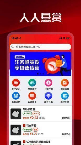 1、任务:不同种类的任务,用户可以领取合适的任务,根据要求完成就可以获得收益;