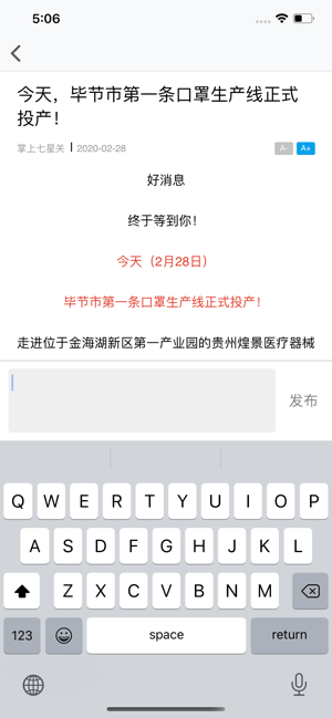 致力服务与七星关用户的《掌上七星》是一款地方新闻资讯阅读平台。在掌上七星软件内,拥有着丰富的新闻资讯内容可供当地的用户们随时的进行阅读。软件内的新闻涉及到的面非常的广泛,你想了解阅读的在这里都能轻松的搜索的到,记得订阅关注你喜欢的内容,极速的更新,第一时间为你推送通知,精彩内容不可错过。