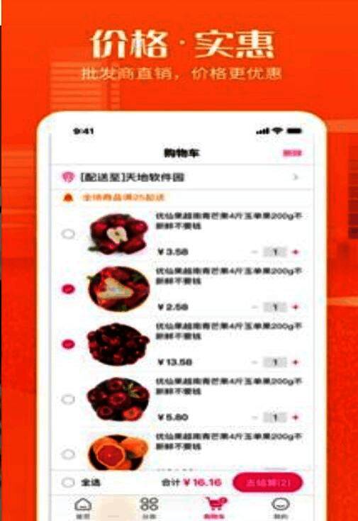 2、在线付款:用户选定好自己的生鲜后,方便快捷。