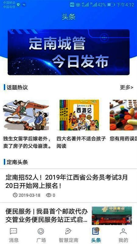 专门为定南地区打造的《智慧定南》是一款综合性的一站式的服务平台。依靠大数据与互联网技术,将很好的为当地的用户带来特色的定南智慧生活。在软件内,每天都有地方的头条新闻资讯推送,实时都能了解到当地周边的新闻动态。丰富多样的生活服务,更好的让你享受到智慧的定南生活。