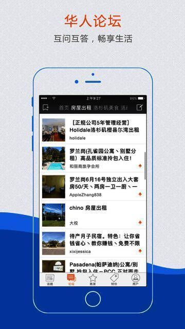 1、覆盖范围:覆盖美国各大城市,汇聚洛杉矶、纽约、旧金山等地最全面的华人生活资讯,包含华人论坛、商家点评、特价信息、新闻头条等多个华人生活版块,涵盖房屋租售、求职招聘、汽车租售、二手置换、征婚交友、旅游订制、法律援助、美食地图等众多华人生活分类信息;