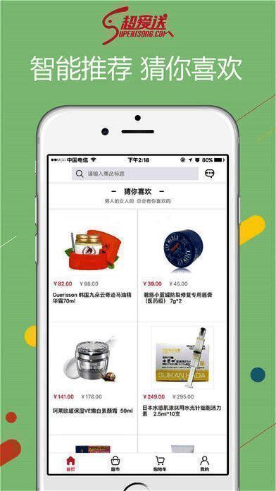 《超爱送》,一款专业的在线购物商城。所有商品,均来自厂家直销,让你以最低家购买到各种优质商品,会员更可享受5-8折优惠,让你省钱省到底。还有最专业的配送服务,让您足不出户就可以快速进行购物。快来下载体验一下吧。