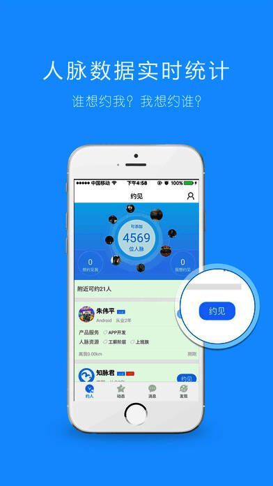 知脉是一个实名制的即时商务约见平台,主打同城人脉拓展;