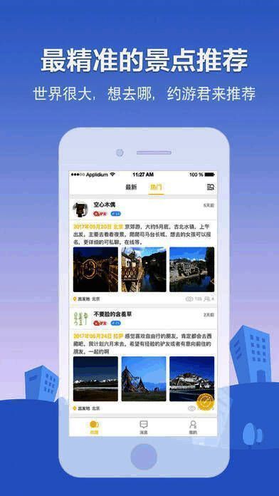 《约游吧》是款社交类的软件;通过聚集全国各地的知名旅游行业的佼佼者而汇编成的软件,内置内容非常丰富包含了许多知名人士的经验分享,这里有着最精彩的足迹模板。