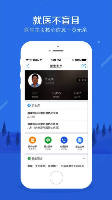 医生咨询:线下各专科知名医生,提供电话咨询、图文咨询等服务,无需去医院院,亦可轻松问诊;