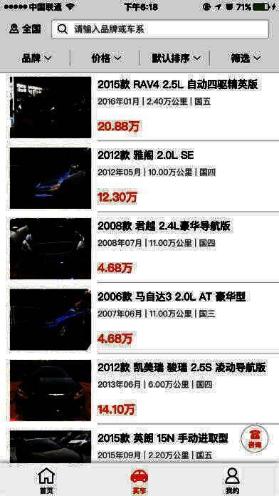 1、【选车】数万车辆实时发布,设定品牌、价格、车龄等条件快速完成筛选,快速准确;