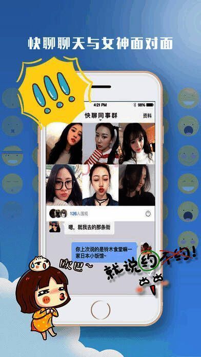 《快聊》是款设计类的软件;软件能一对一视频聊天,让你和你的女神直接互动聊天。能交友快速脱单的神器,通过此软件会邂逅下一个TA。该软件的页面以白色为主调,蓝色为副色调,给人一种清新不脱俗的感觉。