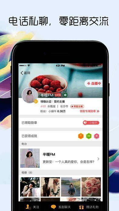 情咖fm app是专为广大95-00后年轻用户打造的一款情感热线直播电台,该软件主打情感领域互动电台,特邀来自全国各地的万千人气明星声优主播,24小时全天候不间断在线互动直播,让听众通过评论、点赞、打赏、弹幕等方式与主播进行一对一语音通话,轻松交友。同时还将各色音频、直播进行了分类,如恋爱、两性、故事、文学等,每个领域都有一批专业心理咨询师,听众如遇到情感烦恼,可收听其节目或直接语音,进行情感交流、解决情感问题。