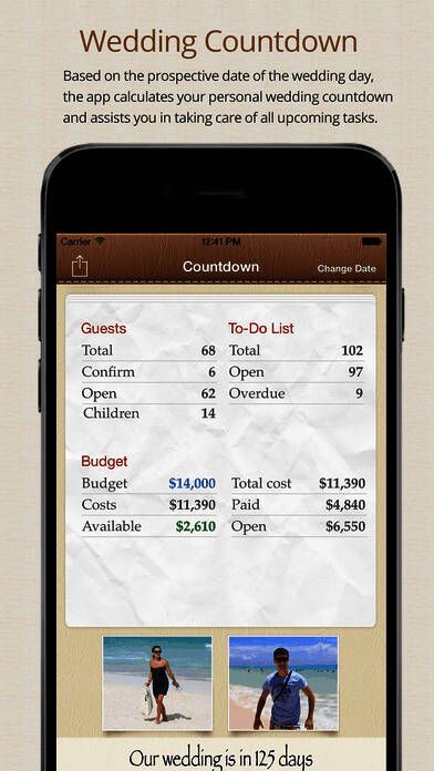 基于您预期的婚礼日,本应用可以计算您婚礼的倒计时并协助您及时处理好面临的各项任务;