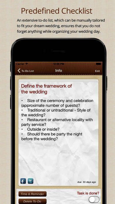 内容丰富且可以手动调整以适应您梦想婚礼的计划清单,能确保您在筹备婚礼时不会忘记任何事项;