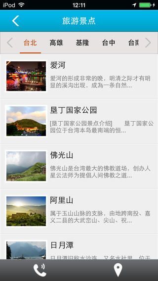 5、旅游景点:本应用利用列表的形式清晰的展示出台湾旅游的最新详细讯息;
