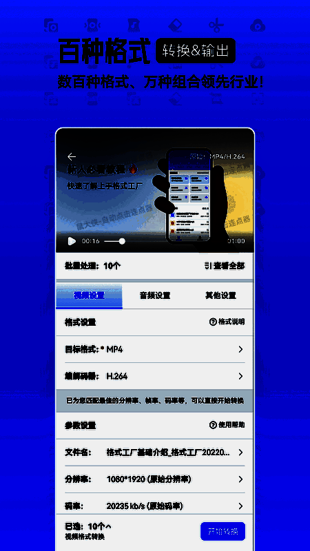格式工厂集成了多种实用工具,涵盖音频提取、格式转换、图像处理和视频转换等功能。它支持MP3、M4A、WAV等多种音频格式输出,图像方面则兼容JPG、PNG、GIF等常见格式,视频转换也覆盖MP4、MOV、AVI等主流格式。此外,转换后的文件完美适配iPad、iPhone及Android设备,内置播放器还可直接播放各类媒体文件。