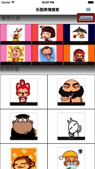 2、可通过分类列表快速搜索表情;
