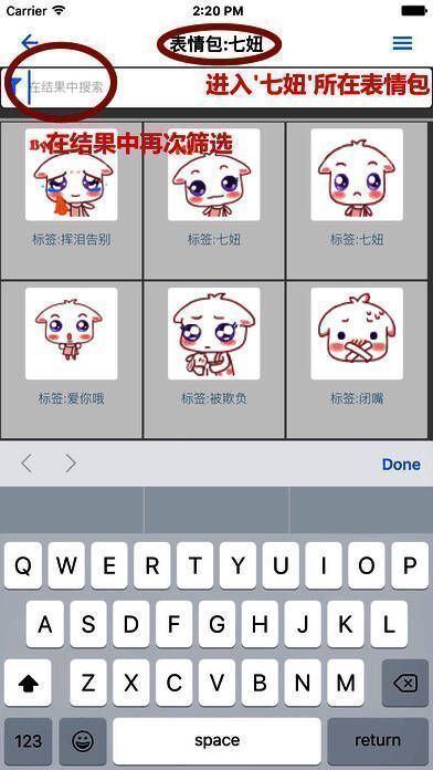 1、可通过输入关键词来快速搜索表情;
