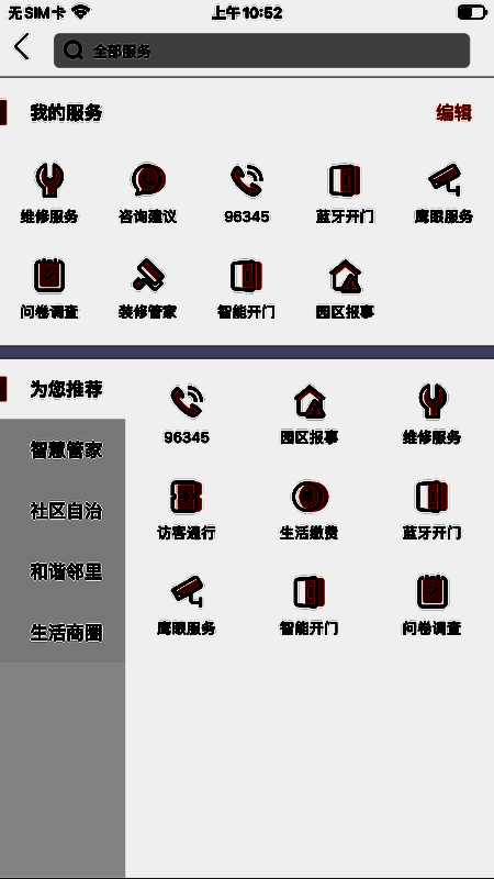 4、便捷功能服务的集成可以进行快速的保修、一键开门、园区报事等多样的服务;
