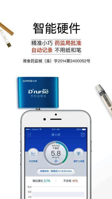 精准测量:糖护士是中国首款通过国家食品药品安全监督管理局认证的智能血糖仪系统,参与了多家三甲医院的糖尿病管理研究项目,得到专家认可,精准权威;