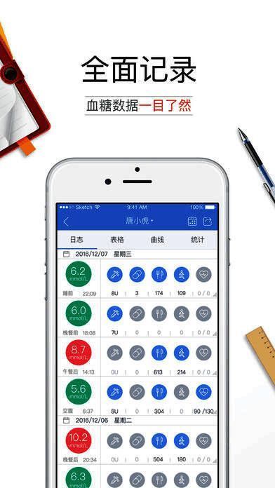 实时自动记录:血糖数据可通过血糖仪自动记录,生成表格及分析曲线,免去血糖记录时纸笔麻烦以及无法掌握血糖变化规律的困扰;