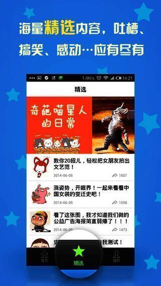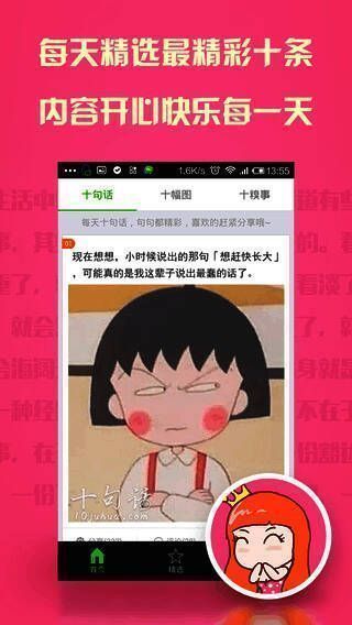 1、惊喜挑选:10条~!每天只有十条,每一条上榜的段子图片糗事都是经历了严酷的生存考验;