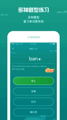 【多种题型训练】背单词:通过用图背单词;做题训练:英文选意,中文选意,听音辨意等等,让小孩子可以多个维度进行训练单词;