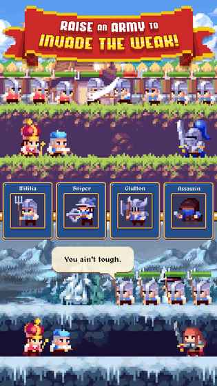 点击帝国是一款拥有趣味玩法模式和诙谐庞大史诗剧情的像素风格策略游戏,游戏采用了真实震撼的建造和战争玩法模式,可以收集强力的英雄角色为你的王国而努力,体验真实有趣的玩法模式!