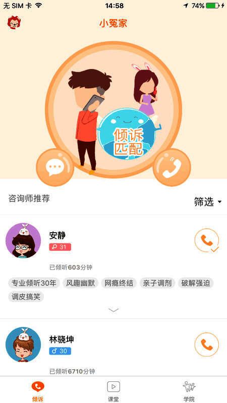 1、即时在线与心理咨询师沟通,可以指定咨询师也可随机匹配,满足您的不同需求。