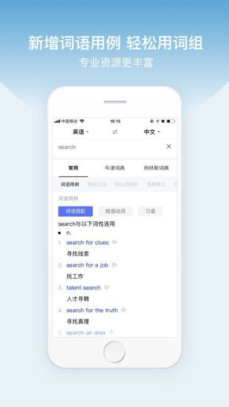 权威词典:收录权威词典,本地10万词条,云端500万词条,联网情况下还有网络释义、同反义词、例句和百度百科等丰富结果。