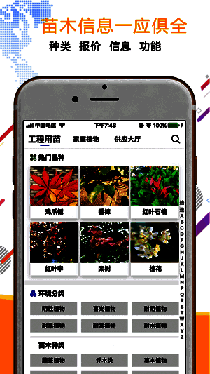 上千种植物。[热门品种],[环境分类、苗木种类,用途分类],让你认识/选择苗木得心应手。功能、病虫害、防护、参考价、商家报价一应俱全。