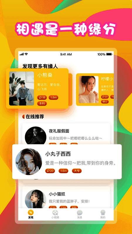 系统独创精密算法,根据双方的个人信息、行为爱好位置信息等大数据进行分析为你们匹配最心动的TA。匹配成功后你们可以进行视频、语音等聊天互动,实实在在的面对面畅所欲言。