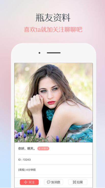 2、漂流瓶:不受限制的扔瓶子捞瓶子,寻找你的另一半。