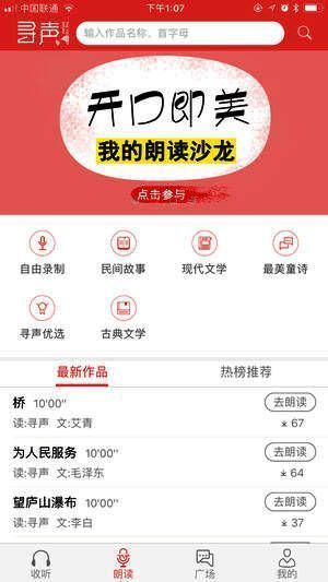 随时随地,畅所欲言,大声朗读,秀出自我。《寻声朗读》app一款助力于开发学生朗读水平的软件,让想要大声说出来的朋友可以有一个倾诉的地方,我们为你提供最专业的微端录音编辑功能和优化功能,与全国十几所知名大学形成战略联盟,在这里让你平日里没有力量的声音,变成一种感染人心的力量吧!