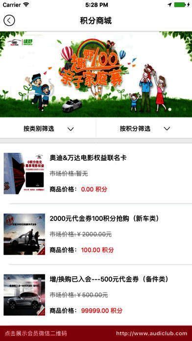 积分商城是会员消费积分的唯一兑换途径,可兑换专属的商品与服务,包括实物礼品、奥迪精品、奥迪备件、用车服务、生活服务等。