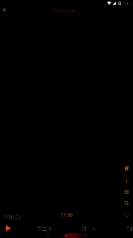 对于需要关注风力变化的用户来说,Windy提供了便捷的风力分析功能。进入主界面后,点击位于顶部的功能菜单按钮,选择“风”这一选项。