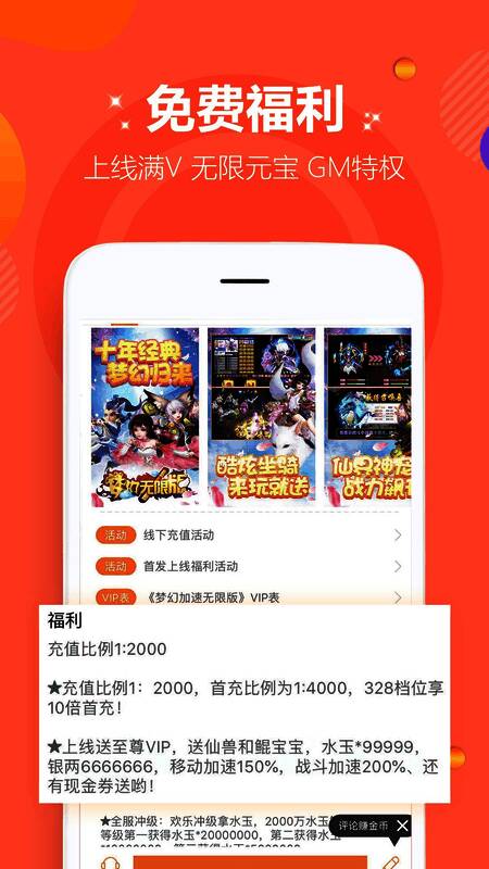 至尊VIP、海量钻石元宝、独家礼包上线即送