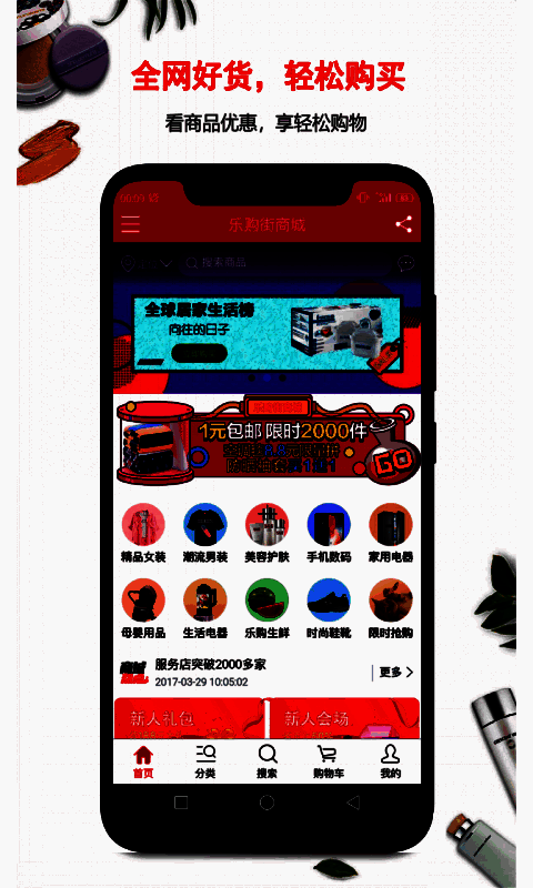 乐购街商城是一款非常实用的手机网上购物软件,这里有海量超多优质商品,这里的商品全部都是经过人工挑选进行分类,大家可以轻松的找到自己想要购买的商品,所有的商品商家都是有正品保证的哦,免费领取优惠券让你享受最亲民的价格,分享好物给你的好友一起来省钱购物吧!