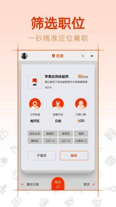 1、更改了筛选界面,让找兼职变得更便捷更有趣;