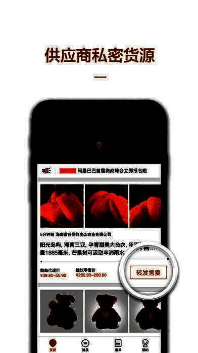 采源宝App是1688微供业务中主要针对微商代理开发的一款独立App,微商代理可通过该App查看自己供应商发布的商品和动态;将商品和动态快速转发到微信朋友圈或者微博等进行售卖;当微商接到买家的订单时,可以在App中对供货商进行快速下单、交易、支付、查询物流信息。