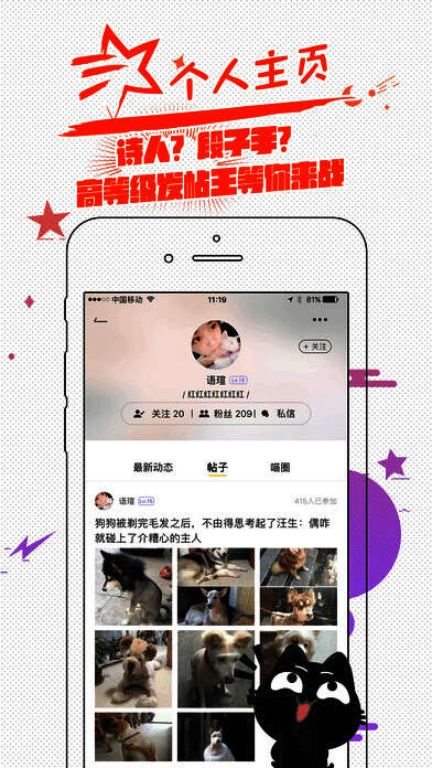 3、个人主页完善--动态、帖子、喵圈,诗人段子手?高等级发帖王?一看便知;