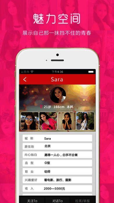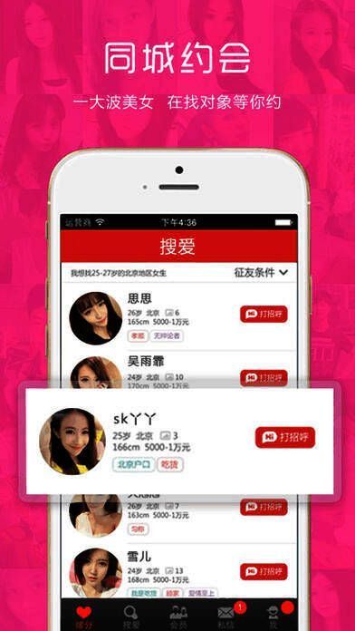 5、随时随地恋爱的必备神器:还在因为工作忙,朋友圈子小,没时间谈对象而烦恼吗?“找对象”在手,一分钟牵手!缘分天空,同城交友一键到位。