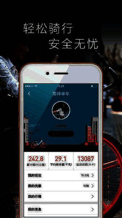 智能:手机上完成租车、用车、姐夫。实时查看周围可骑单车位置。