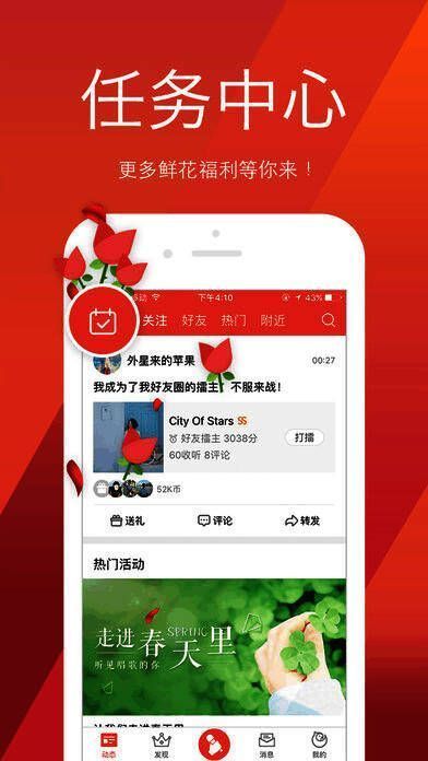 作为腾讯首款K歌手机免费交友应用,全民K歌app独创歌曲段落重唱功能,并拥有智能打分、趣味调音、好友擂台、趣味互动等功能。