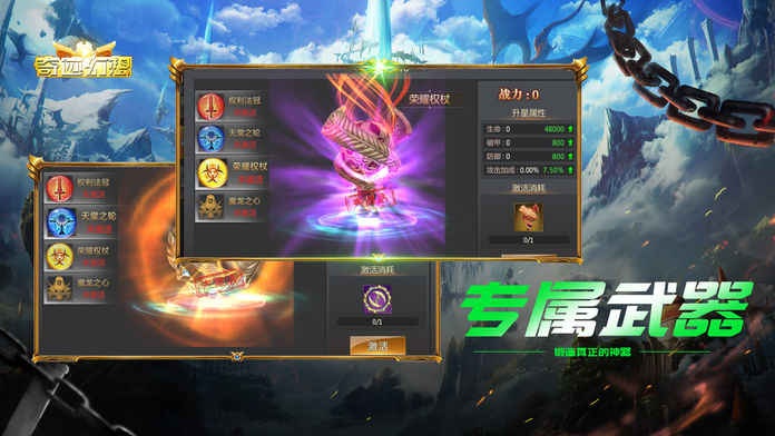 探索新的世界,天降异宝,各种族疯狂争抢,神器神甲神羽助力你成就传说;
