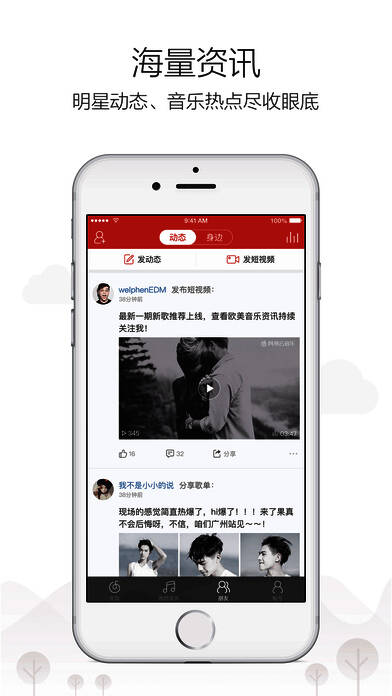 3、用户可以建立自己的主页,可以互相关注,分享音乐,用户的动态在这个圈子里即时呈现。